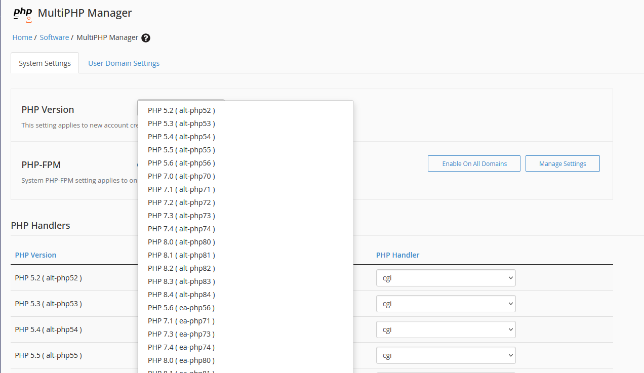 nano /opt/alt/alt-php-config/alt-php.cfg